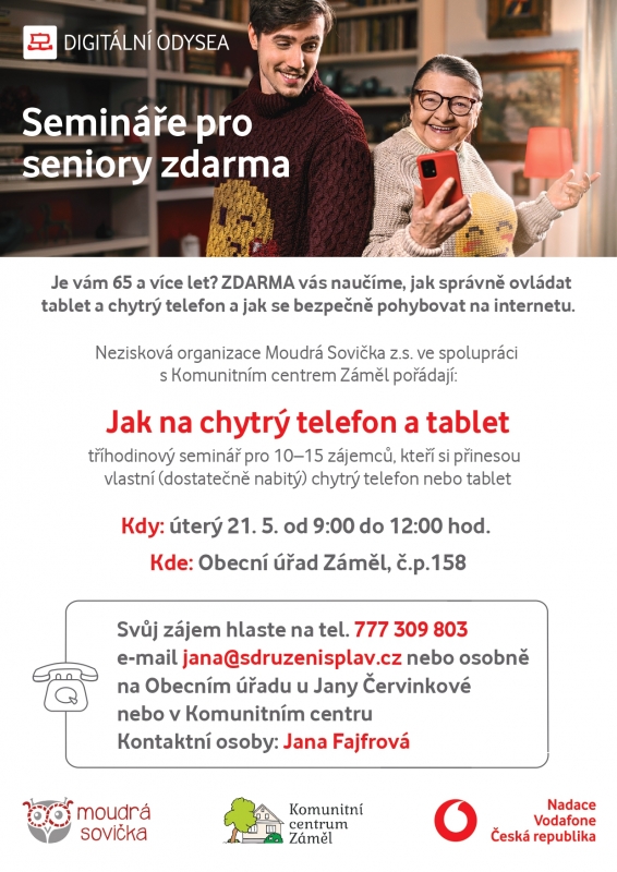 Naučte se, jak správně ovládat moderní technoligie a být v bezpečí na internetu. Přijďte na tříhodinový seminář. Na obecním úřadě.