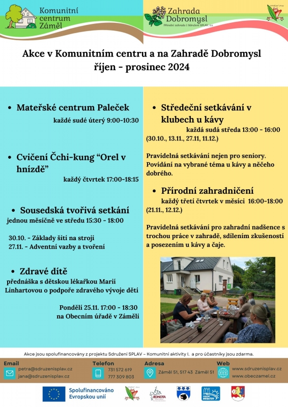 Přehled pravidelných akcí konaných u nás v Komunitním centru a na Zahradě Dobromysl. Tak si vyberte a připojte se k nám!