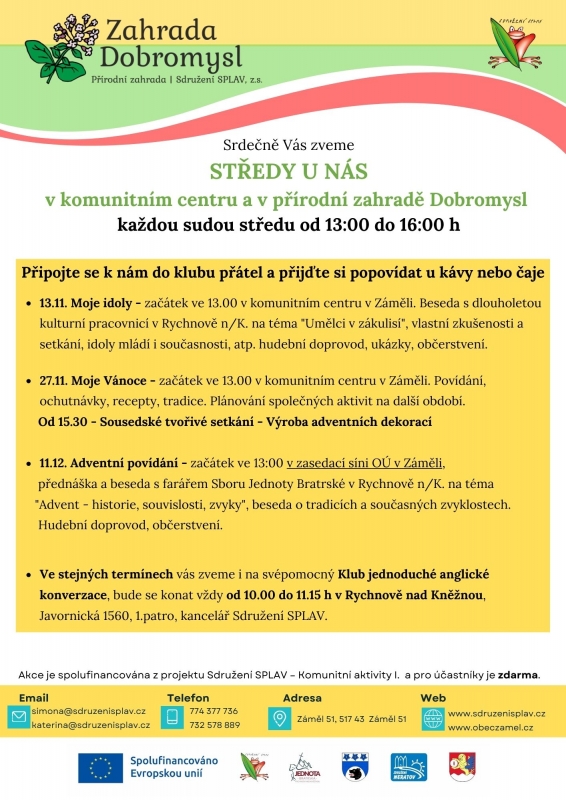 Připojte se k nám do klubu přátel  a přijďte si popovídat u kávy nebo čaje. Každou sudou středu v komunitním centru od 13:00 do 16:00 h