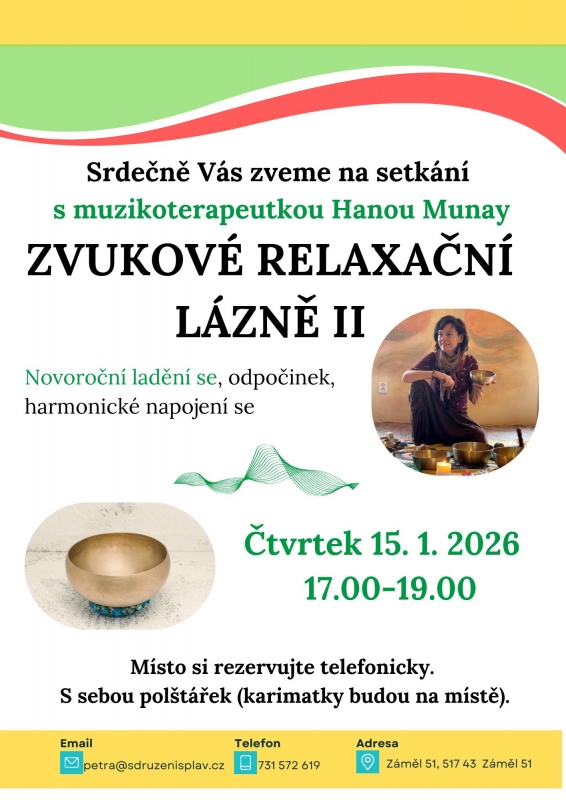 Přijďte si odpočinout a zrelaxovat při harmonickém zvuku mís. Je třeba se přihlásit.
